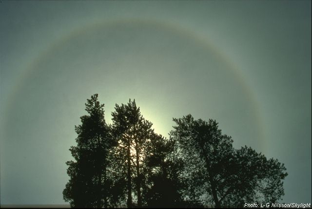 If the cirri are followed by a thin white veil of clouds eventually covering most of the sky, this is another sign of a comming low pressure. When the sun shines through the high veil of clouds, the small ice crystals of the cloud scatter the light. This makes a ring of light, called a halo, form around the sun. This phenomenon can be a sign of precipitation, probably within 12 hours.