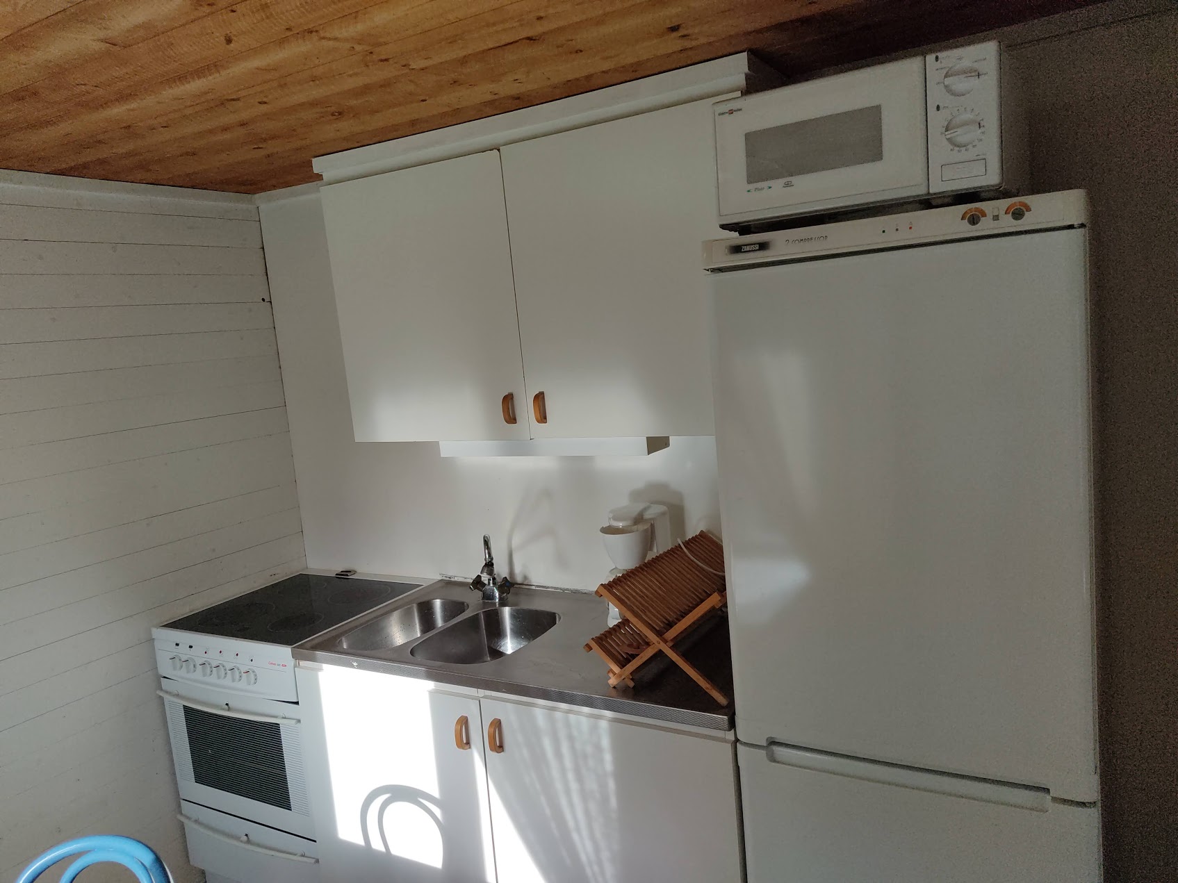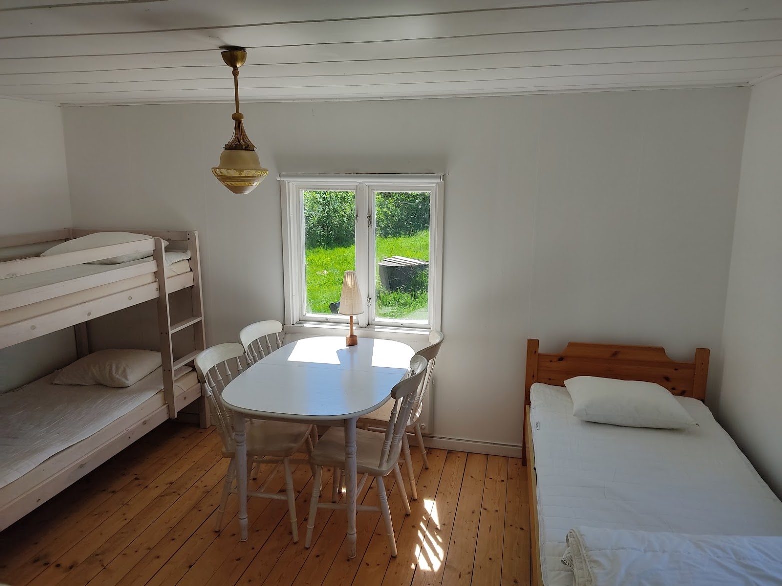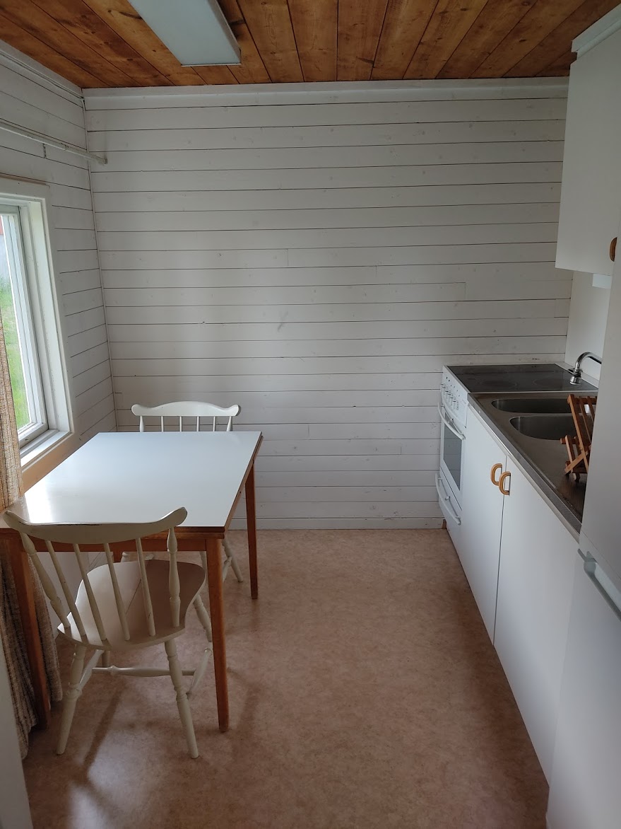 Stuga med en enkelsäng och en våningssäng. Köksdel med kyl och frys, spis med ugn. Toalett med dusch. Stugan ligger nära handelsboden ca 100 m från hamnen.
